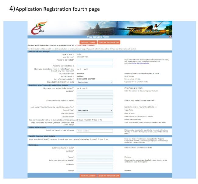 En la cuarta página se detalla el itinerario de nuestro viaje. En la línea en la que se preguntan los lugares que hay que visitar, no es necesario se exhaustivo. Y con respecto al hotel, basta con señalar el primero que hayas reservado. Es importante también que señales “No” en la casilla en la que preguntan si previamente se ha denegado tu entrada a India.