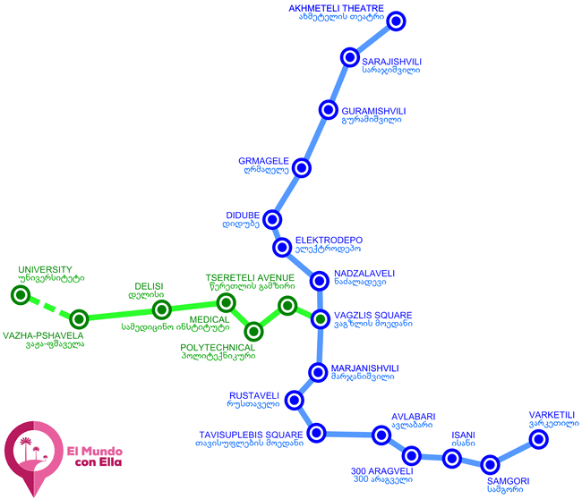 Tiblisi tiene una amplia red de transporte público: dos líneas de metro y muchísimas de autobús.