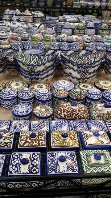 La cerámica de Fes es mundialmente famosa. Capital de la artesanía, Fez se caracteriza por su maestría en el trabajo de la cerámica, la madera o el cuero. El famoso color azul cobalto es símbolo de la alfarería de esta Ciudad Imperial a la que, además, se le suelen aplicar adornos plata. Alguna de las más hermosas piezas de cerámica de Marruecos provienen de aquí.