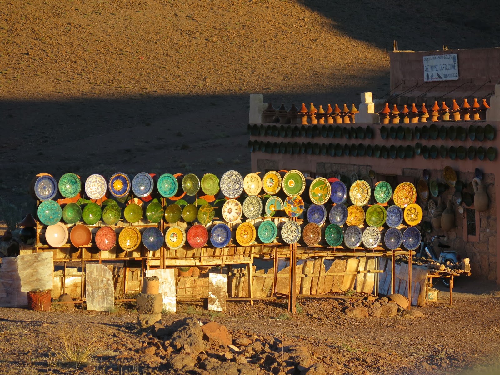 Llegados al paso del Tizi-n-Tichka, una pequeña construcción que sujeta una placa delante de una extensa venta de minerales, nos recuerda la altura a la que nos encontramos. A partir de aquí, el paisaje de bajada cambia bruscamente introduciéndonos lentamente hacia el desierto por la tierra de los oasis, las kasbahs y los ksour: hacia el lugar que se conoce como “Ruta de las Kasbahs” o “Tierra de las Mil Kasbahs”.