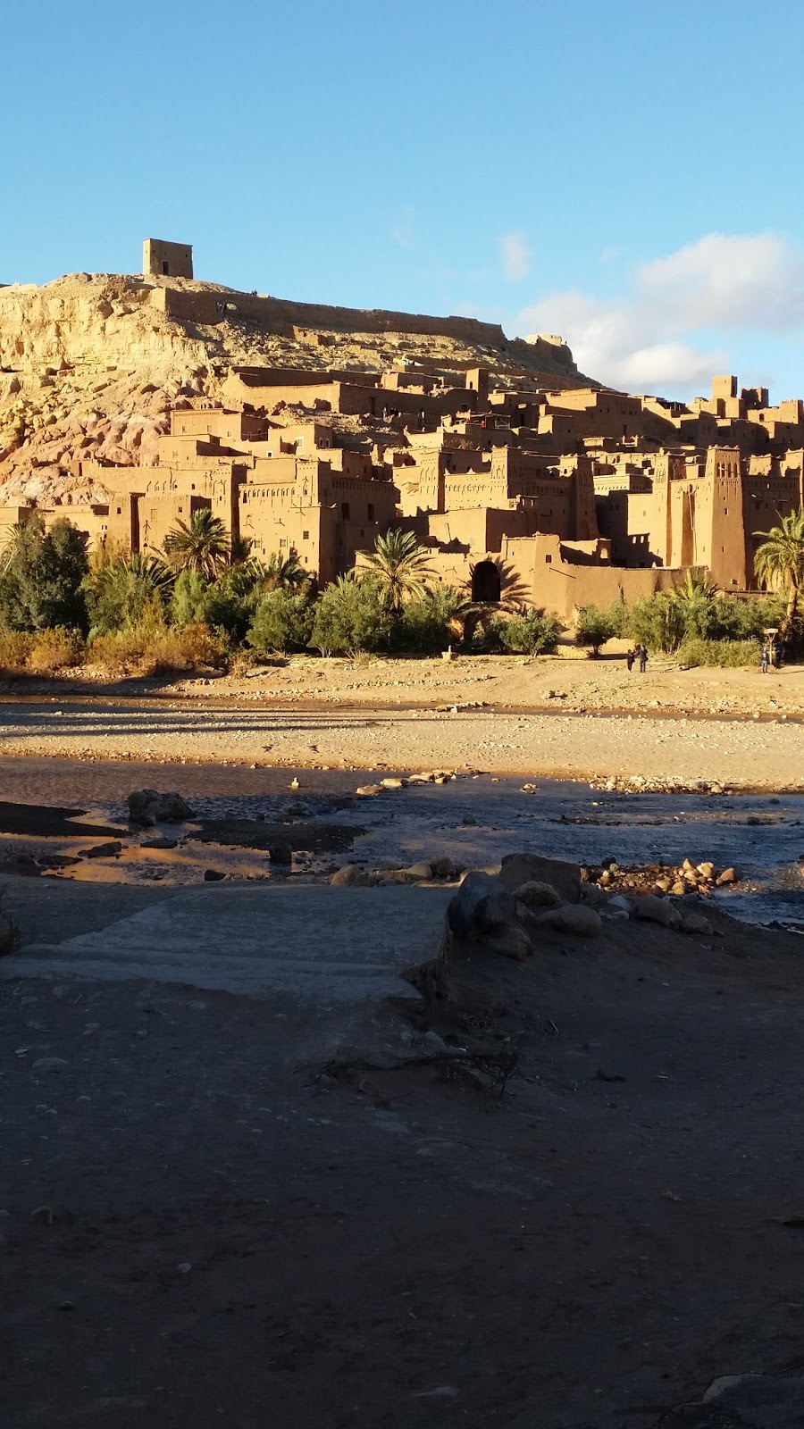 El hotel está en Ouarzazate, aunque puedes elegir otros en el sitio exacto, y te costarán un poquito más caro. La verdad es que Aid Ben Haddou es uno de los sitios más bonitos de Marruecos. Será por su ubicación, su conservación, su fotogenia, esa luz, los colores… no lo sé, pero quizá eso mismo haya justificado su elección como decorado para tantas películas de Hollywood. Visitarlo es como trasladarte en tiempo. Ahora se puede acceder más fácilmente al Ksar, pero antes, la única forma era atravesar el río saltando de piedra en piedra o en burro, con lo cual la aventura se hacía más entretenida.