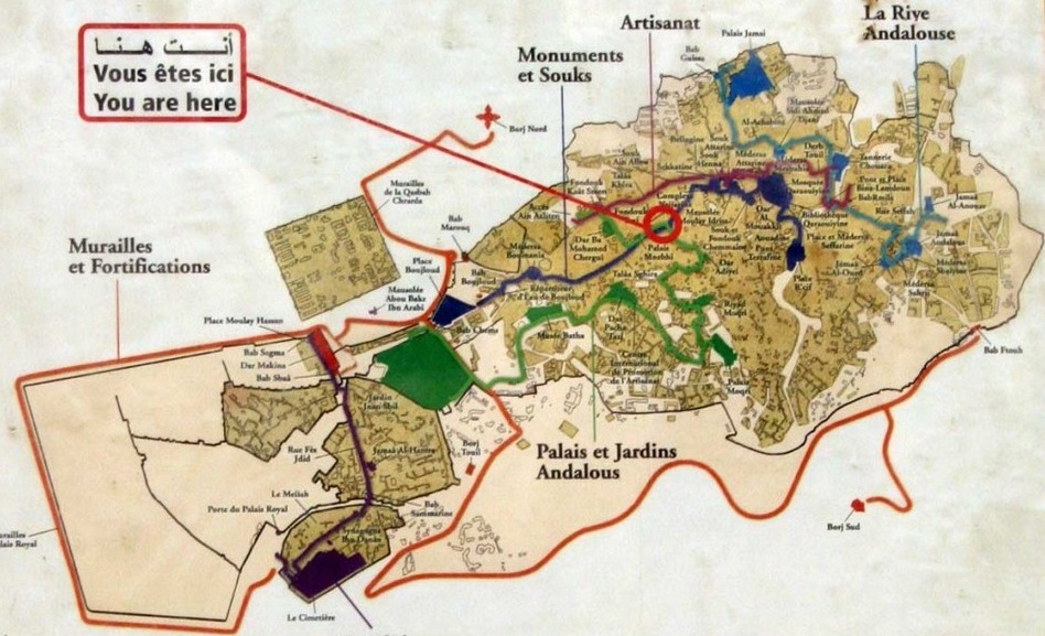 | Plano de la medina de Fez Fuente: www.guiademarruecos.com |