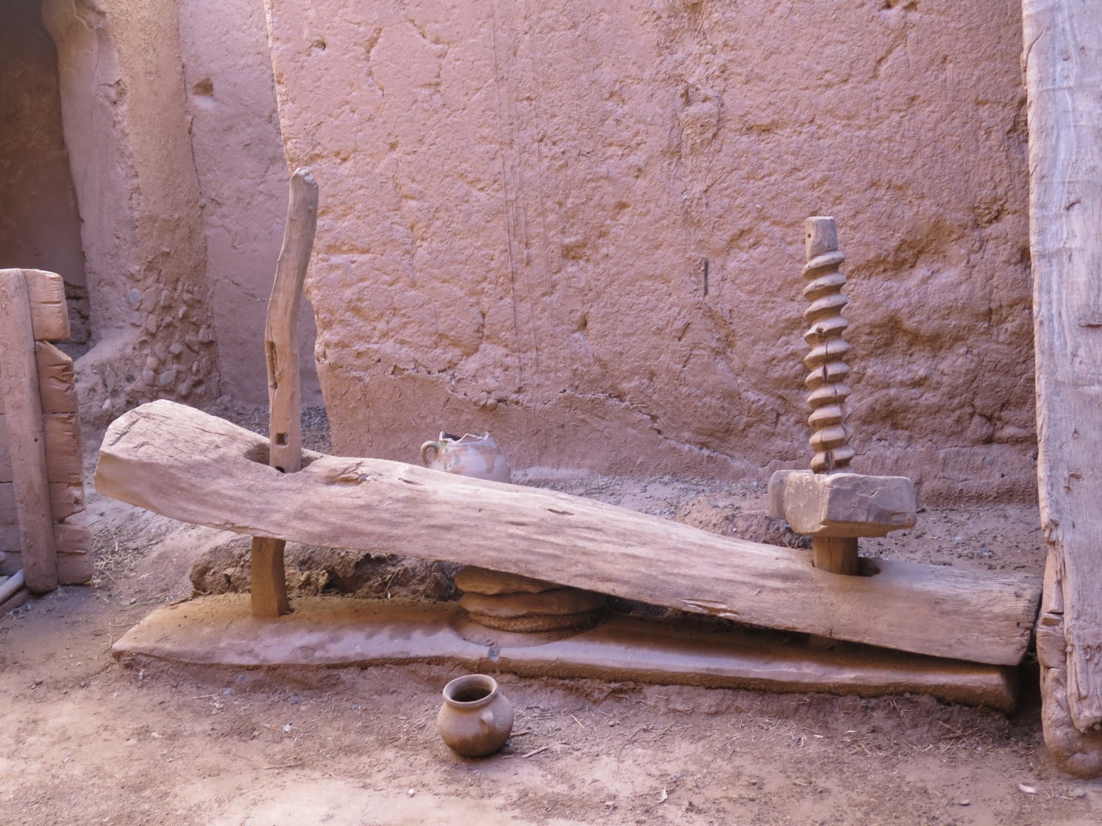Además de su belleza, lo que hace especial a la Kasbah Amridil es que ha conservado casi en su integridad todos los aperos de labranza y elementos del ajuar doméstico como debieron ser hace un par de siglos. Y, aunque colocados de manera un poco desordenada para ser observados, la mayor parte de ellos aún son funcionales: muelas, prensas, lámparas de aceite, tinajas, morteros, candados y ¡hasta una bomba y un gramófono!