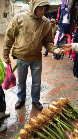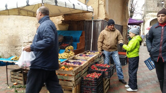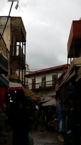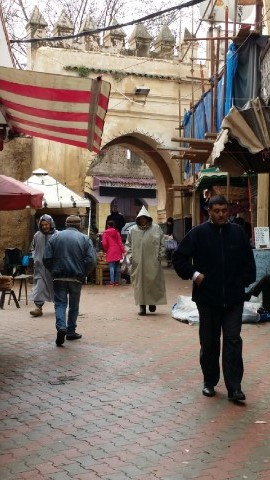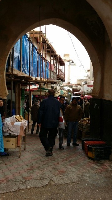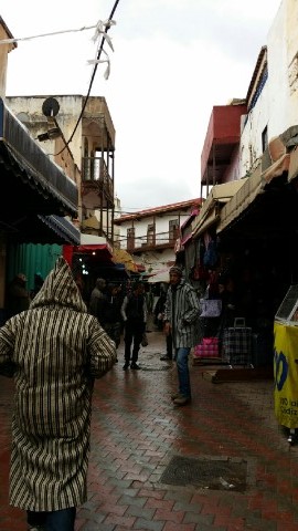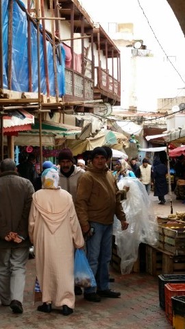 Aparcamos en la amplia avenida justo enfrente de la puerta Bab el-Maqam, bajo una fina y persistente lluvia. Pronto apareció el típico guía, al que agradecimos que no nos acompañara, y nos adentramos en las estrellas callejuelas enfangadas del interior de la medina para observar de cerca el continuo ir y venir de hombres entre los puestos de pescado, verduras y carne.