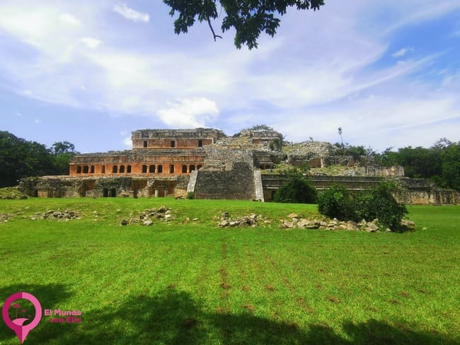 El Palacio: Este edificio cuenta con varias habitaciones y patios y es uno de los ejemplos más notables de la arquitectura de estilo Puuc en el sitio arqueológico.